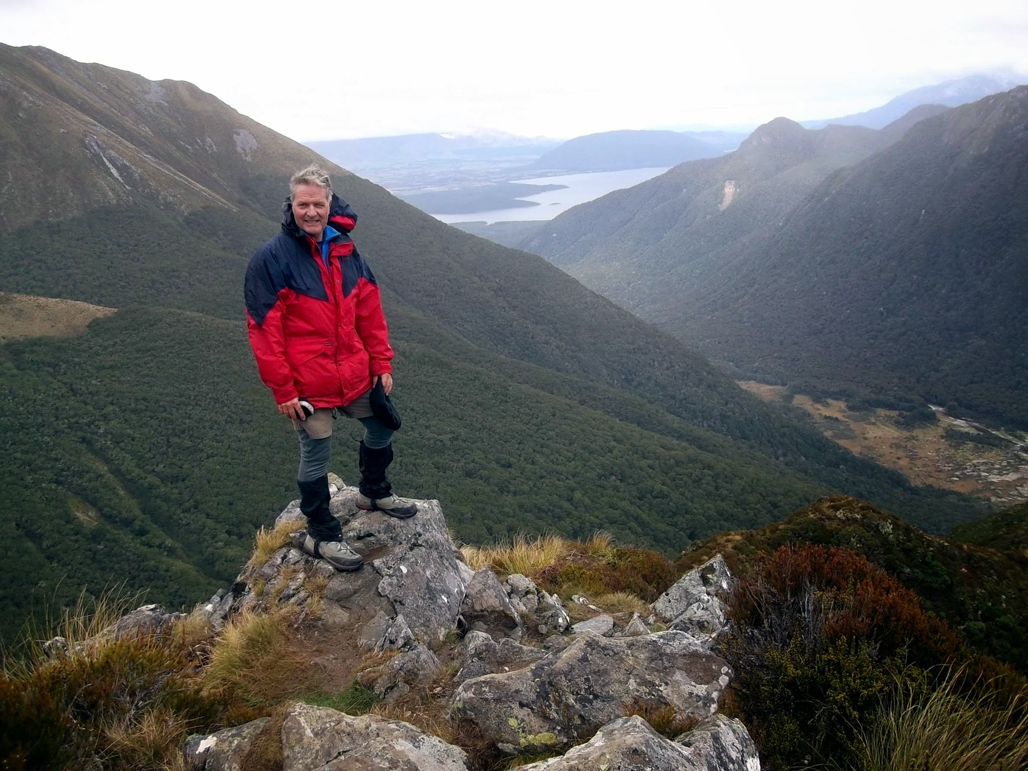 The blue coats at Mt Luxmoore trig - Paula even has matching gloves!