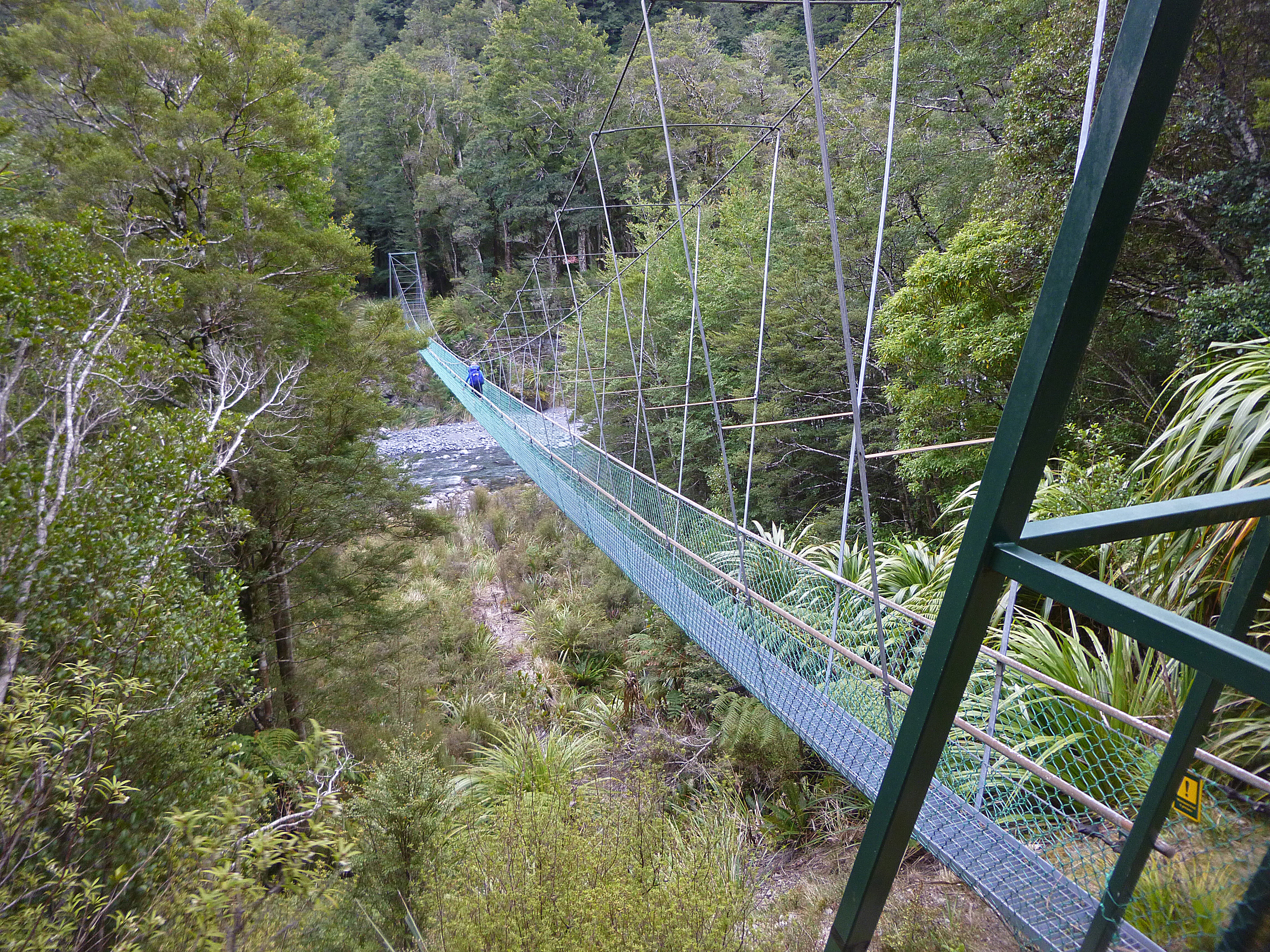 The flash swing bridge across the Waingawa River just below Cow Creek hut