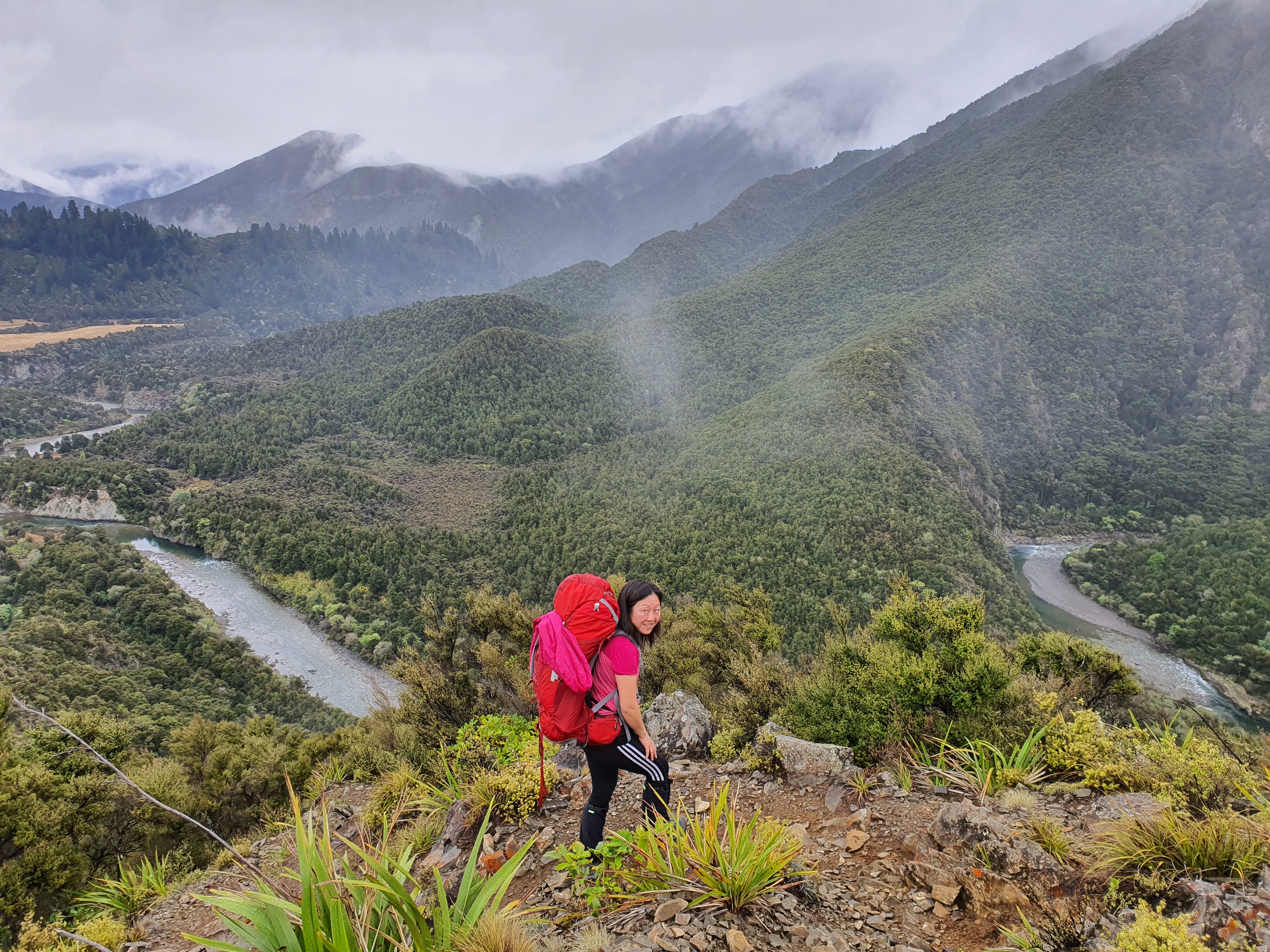 The trip started with a leisurely Friday drive up the Hawke Bay side, including the usual coffee stop at Dannevirke. We started the slog from the Cameron Campsite carpark at Kuripapango at 1:45pm, climbing in misty conditions. It was nice to get to Kiwi Saddle Hut 3½ hours later, in time to put up tents and get dinner started before it was dark. We had the hut to ourselves. The next day dawned nice and fine and we were off down the nice track to Kiwi Mouth. We reached Cameron Hut around 4:30pm which again gave us time to put up tents, collect firewood etc. Overnight it rained, but Sunday morning was overcast and cool yet dry for our walk out.
